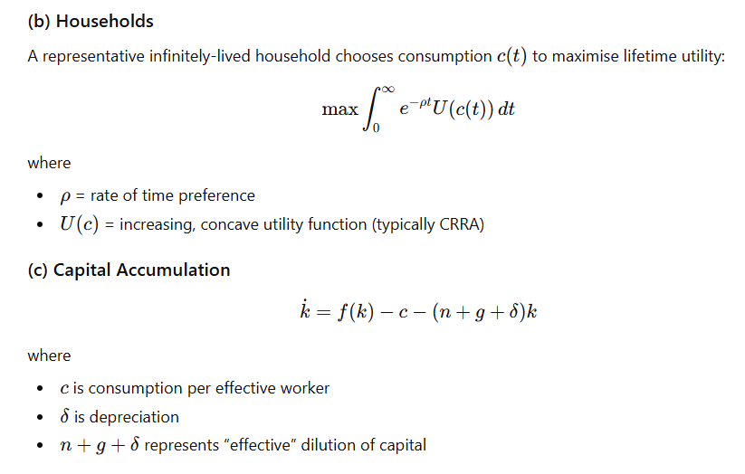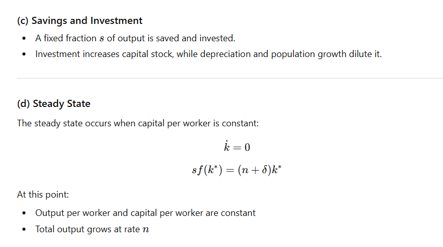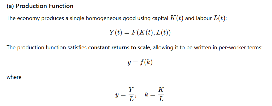 The Solow model rests on several key assumptions, which define its structure and conclusions.